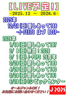 ⇒LIVE出演者様募集中♪ お気軽にJ-POPSまでお問い合わせくださいませ♪