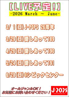 ⇒LIVE出演者様募集中♪ お気軽にJ-POPSまでお問い合わせくださいませ♪